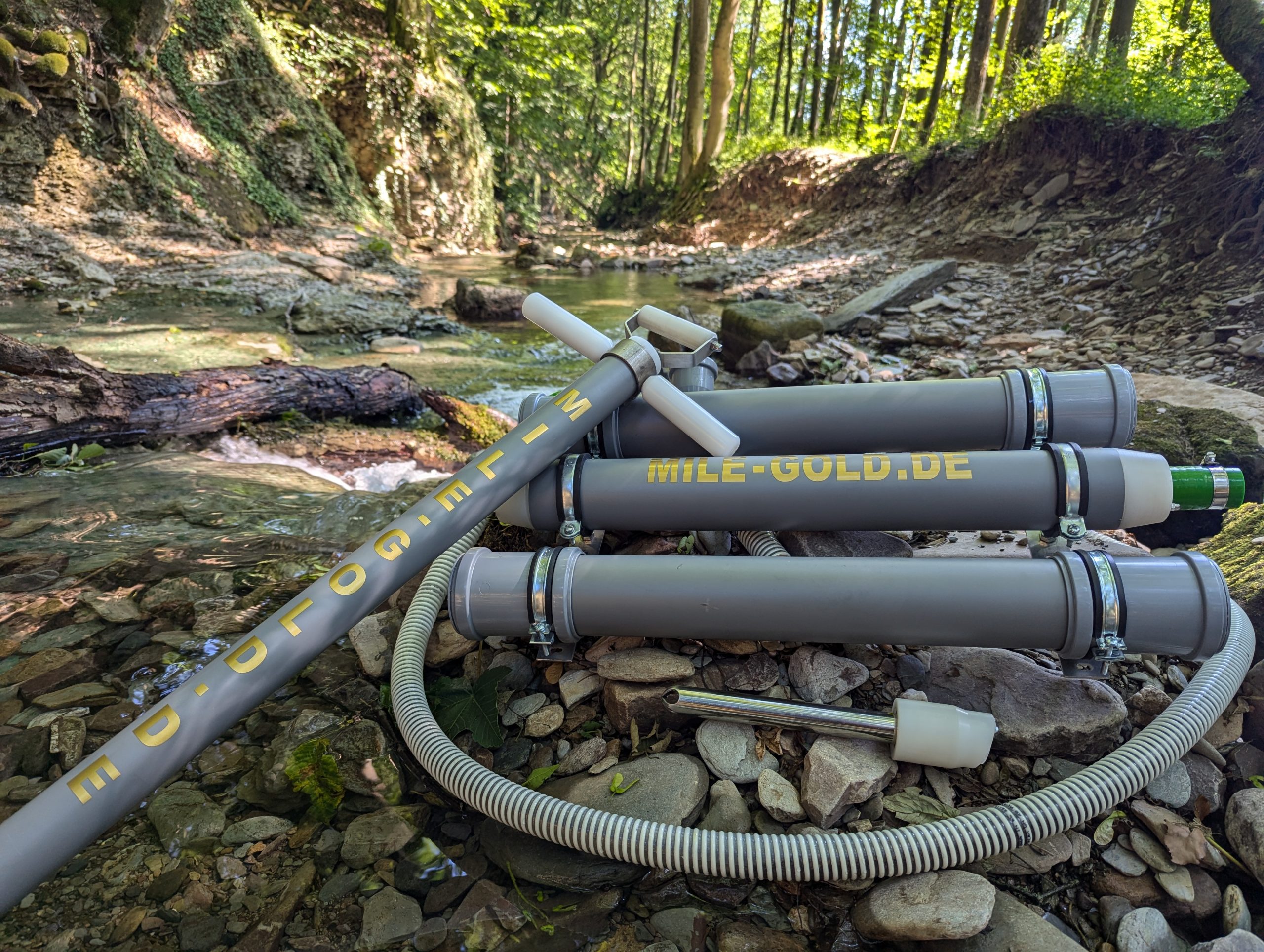 Der Mile Gold Konzentrator ersetzt schwere Rinnen, Schaufeln, Batterien, etc. Außer der Pumpe und einer Goldwaschpfanne sind keine weiteren Werkzeuge nötig. Das Schleppen hat somit endlich ein Ende und auch Stellen, die bisher nur schwer zu erreichen waren sind mit unserem System kein Problem. Da man außerdem keine Geräte ab- auf- oder umbauen muss, bleibt man jederzeit flexibel.